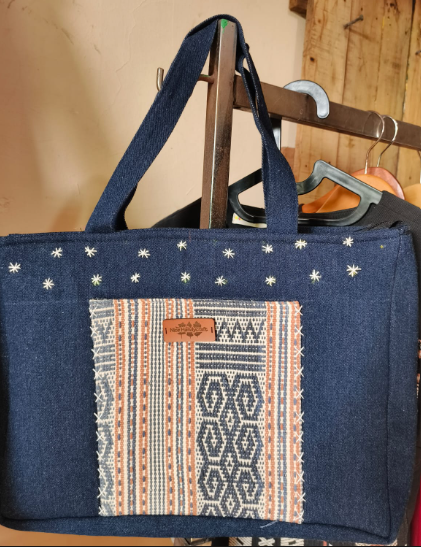 Tas Jinjing, Kain Jeans padu padan Tenun Motif Sumba